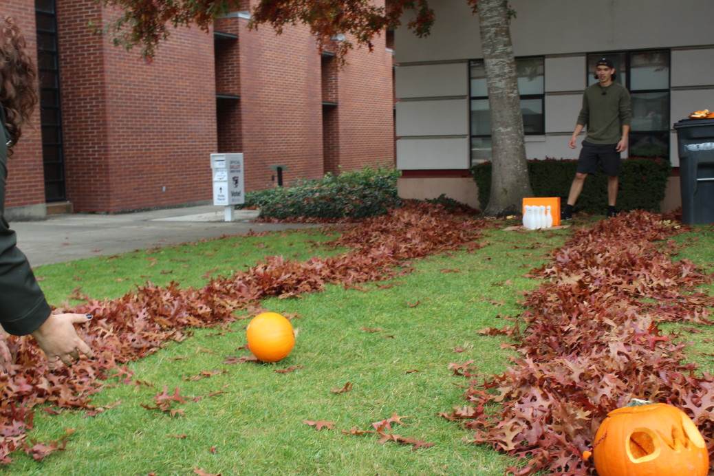By Apple Parry In order to recruit new members, the Sustainability Club set up “Fall Fest,” a Halloween themed event in front of Heiner Center on Oct 30. Fall Fest included games like pumpkin bowling and tic-tac-toe with potatoes. Sustainability Club members go “pumpkin bowling” in front of Baker Hall…