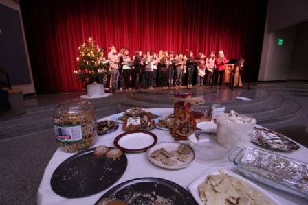 On Thursday Dec. 2 the Syre auditorium was filled with music.  The Spanish Club, the French Club, the German Club, WCC’s Collegiate Choir, and Jami Templeton lent their voices to the event and Rebecca Blair played her Celtic harp throughout the performances.