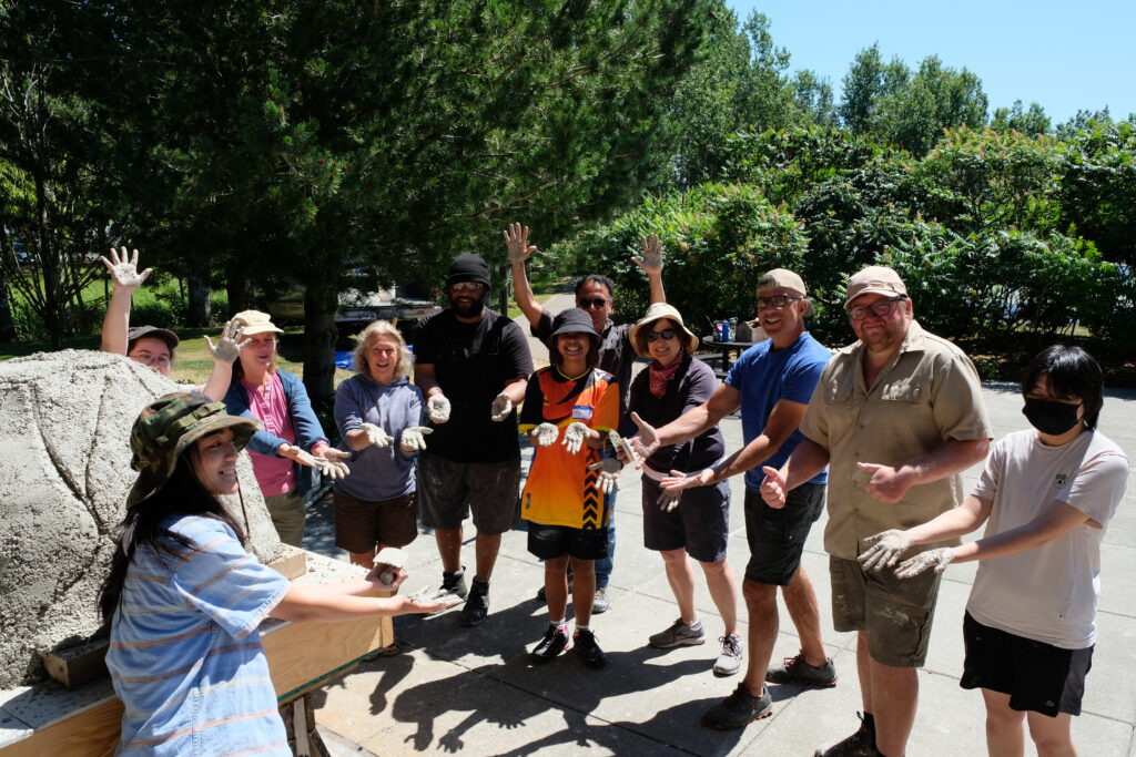 Summer cob building attendees proudly bare their cob covered hands ready to clean up and head home Roe Studios Whatcom Community College.