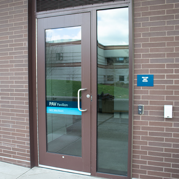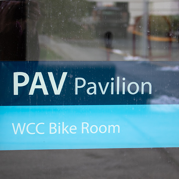 Included as part of the SRC and Pavilion redesign, the WCC Bike Room (PAV 005) supports WCC’s goal of sustainable practices on campus. A large counter and cupboards provide space for minor bike repairs – tool kit included. Colorful lockers for day use line one wall. Bike racks located just outside the door provide an area to store your bike while on campus.